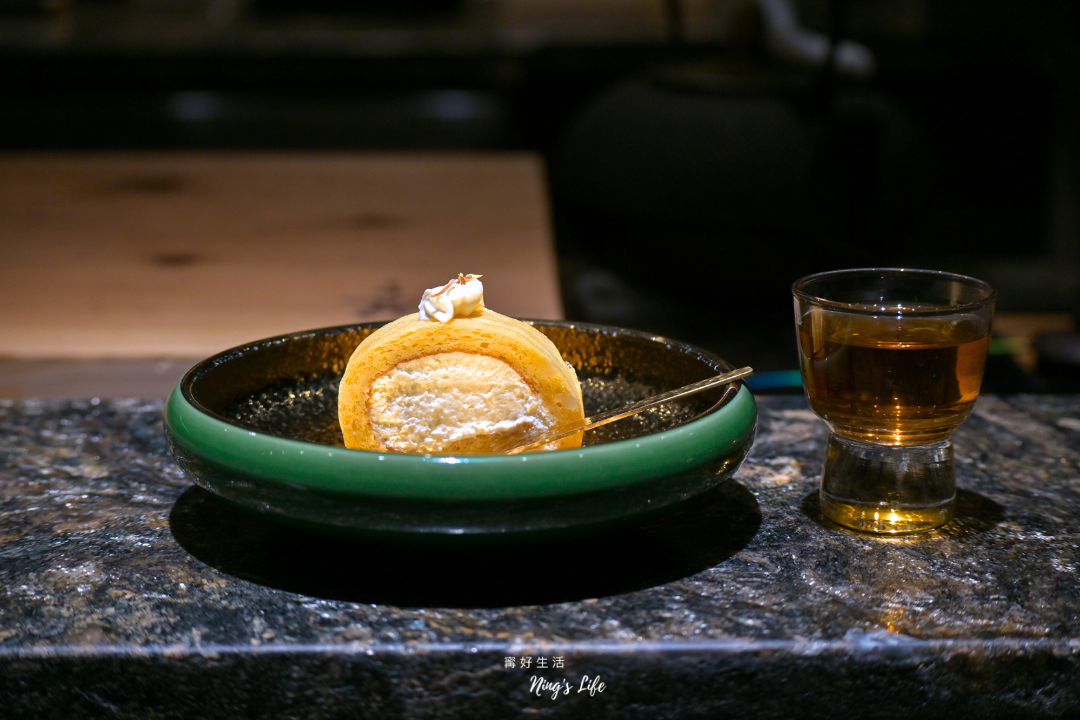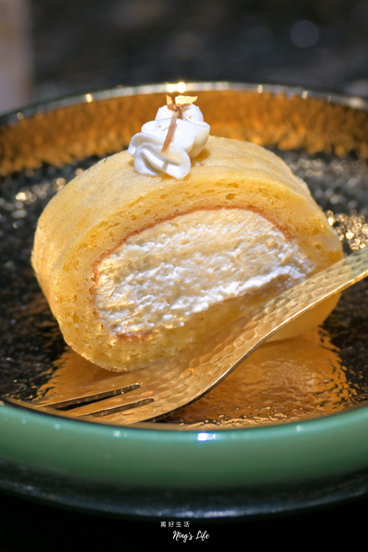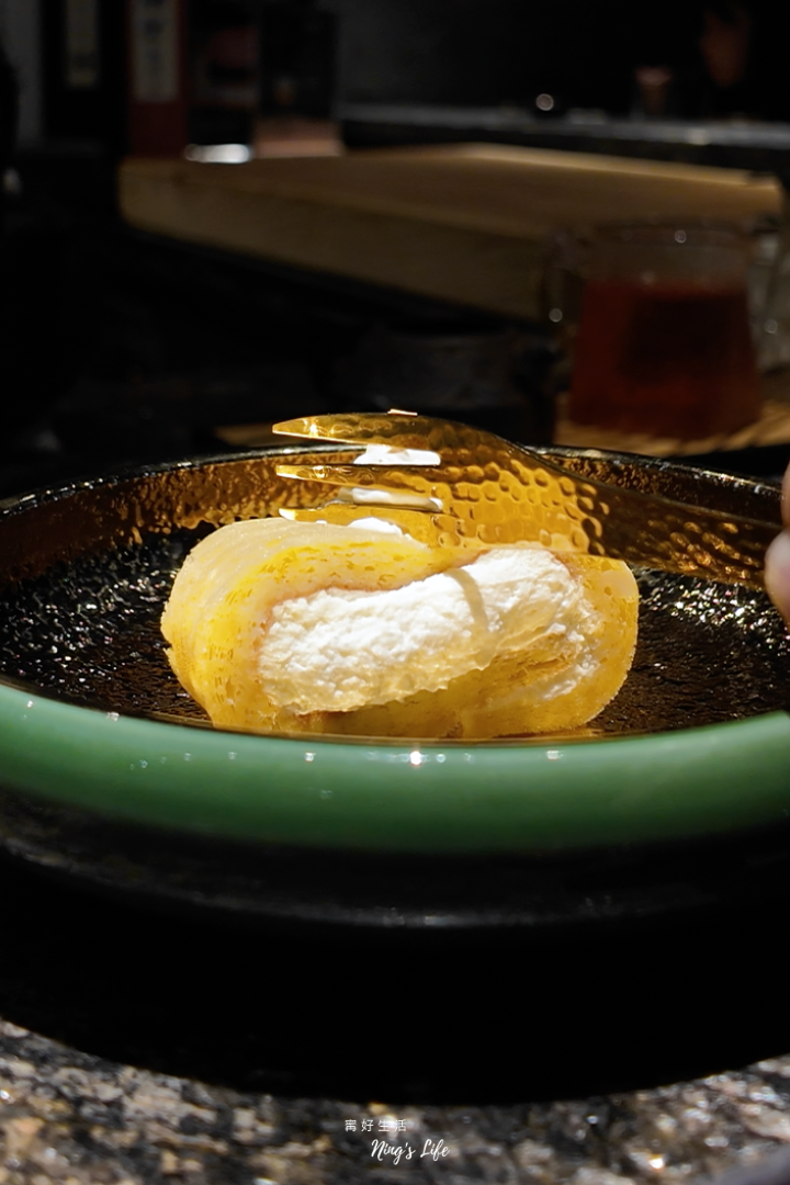 ▲ 梅香玉子捲擷取生乳捲和玉子捲的概念,融合西式與日式技法製作,以魚肉取代麵粉,加入醬油、味醂與清酒調味,口感和味道有特色,像甜點又像是鹹食,內餡鮮奶油調和蜂蜜與梅酒,帶輕柔果香,搭配現沖泡紅玉紅茶,暖心收尾