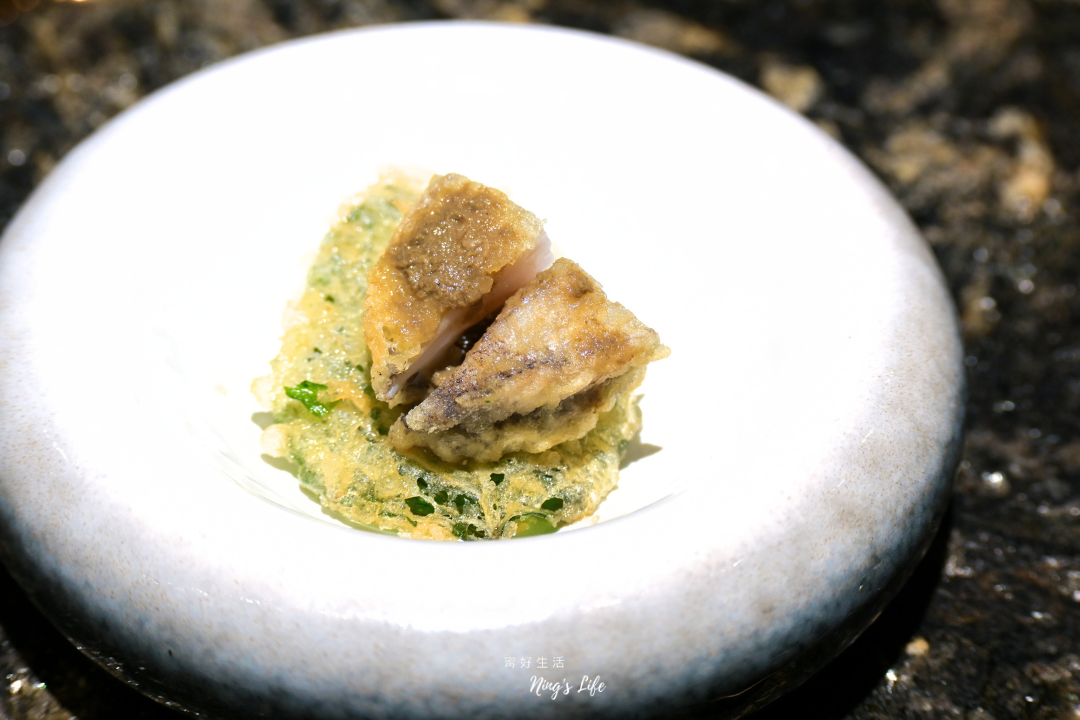 ▲ 季節獅魚肚脂香飽滿,魚肉片得厚、略帶點筋束,淡雅柚子胡椒提點明亮辛香,平衡風味