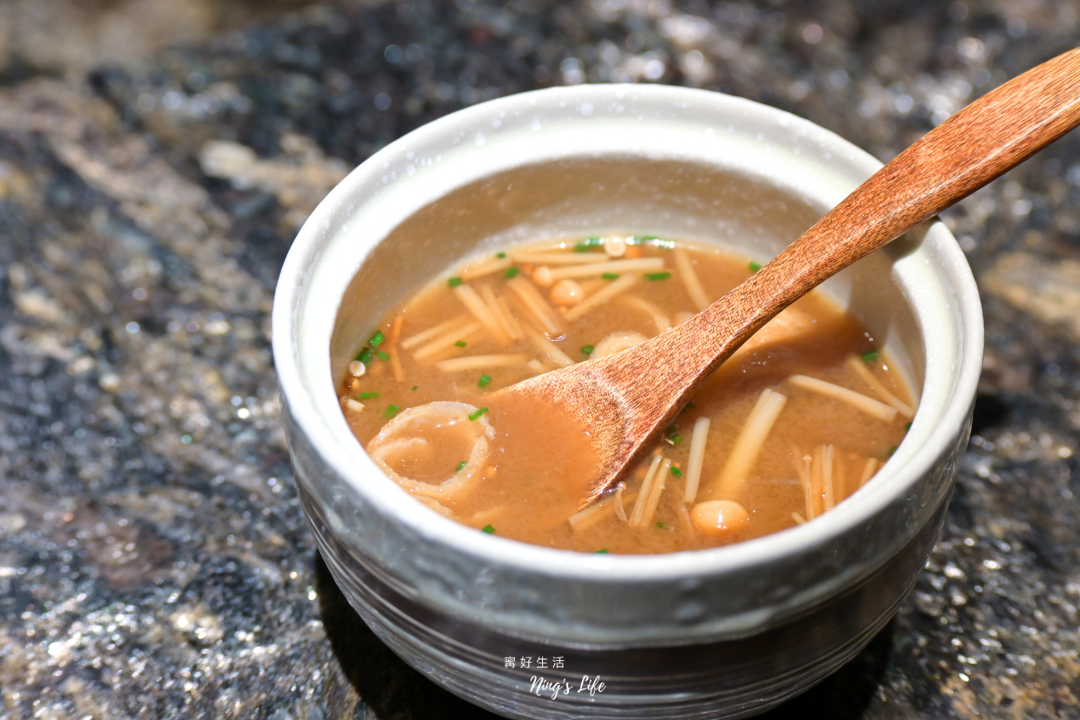 ▲ 接下來送上赤味噌,厚實醇香,尾韻帶著發酵深度,雖然比較習慣在享用米飯時喝湯,但當作轉場也是不錯