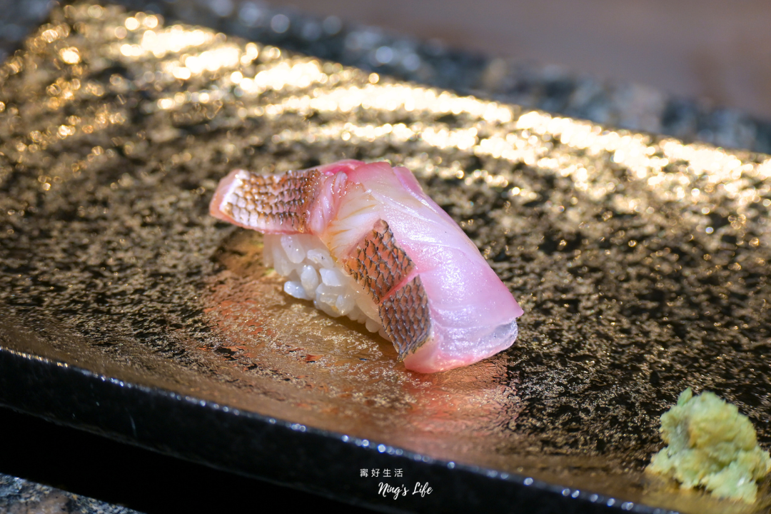 ▲ 伊佐木魚刀功豪邁,魚肉緊實清甜,脂肪豐富但不會過於油膩,微微海潮香氣,搭配溫度恰好的醋飯,乾淨純粹、風味端正