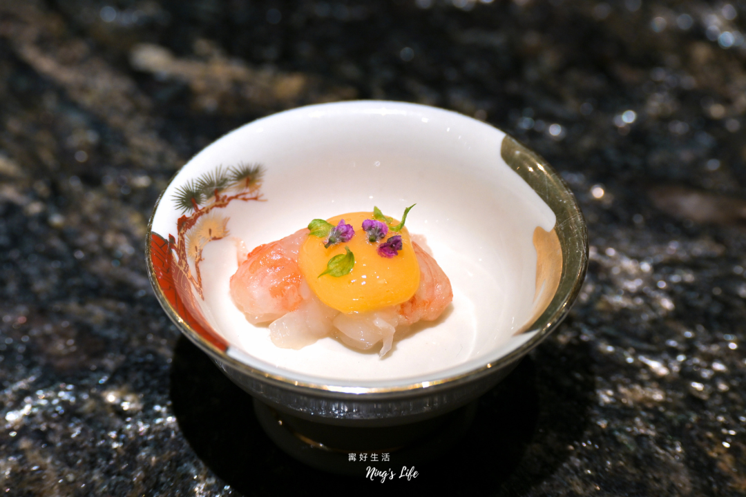 ▲ 牡丹蝦晶透鮮甜,質地滑潤,濃郁蛋黃醋像替蝦肉披上一層金色光澤,甜味被柔和托起