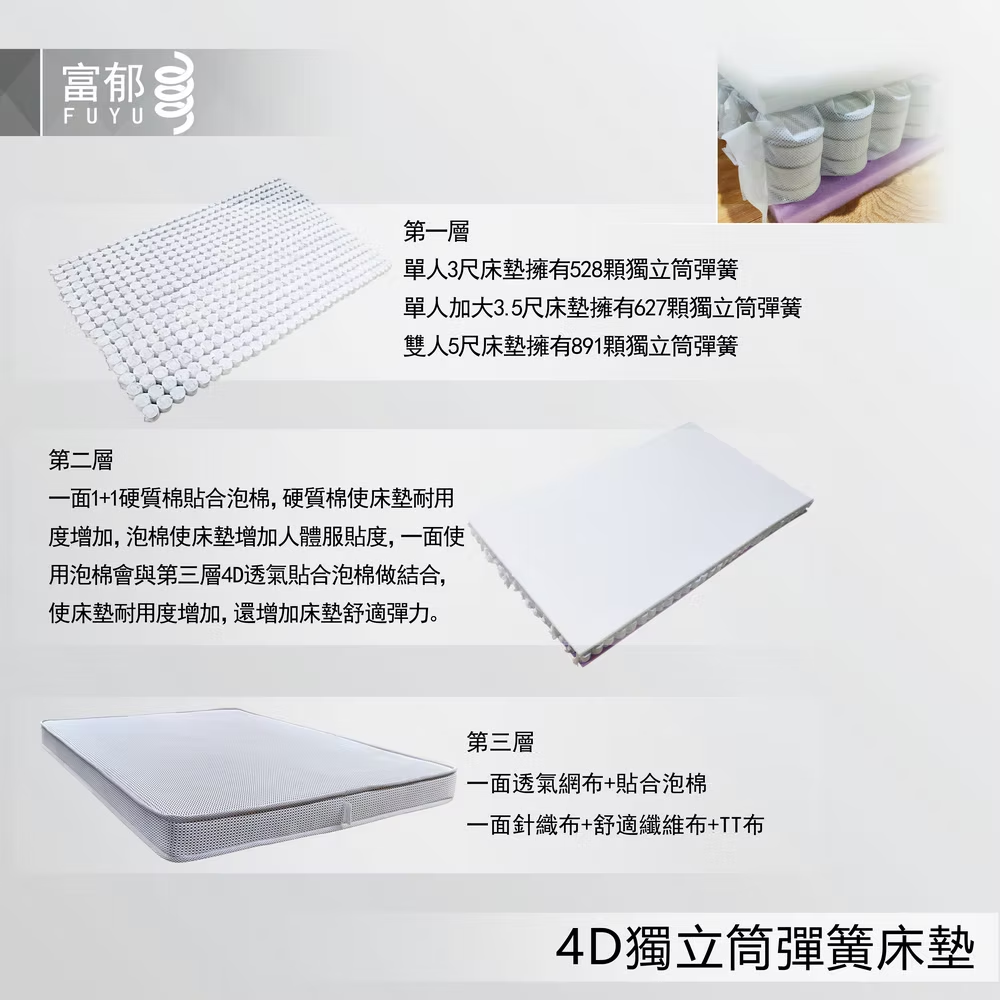 富郁床墊 12cm 4D 透氣獨立筒床墊開箱